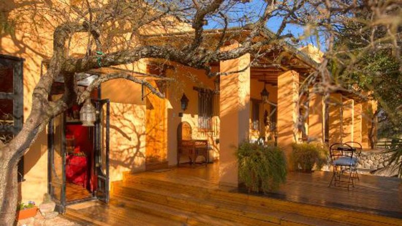 Las puertas de entrada estilo marroquí -que quiebran el estilo de la galería de paredes color zapallo- son lo único que preanuncian que, adentro, puede haber sorpresas, que lo que espera al entrar no será lo que uno puede esperar desde el jardín.
