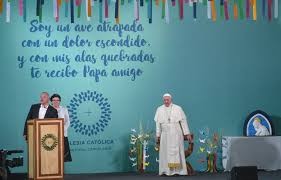 Minutos antes de las palabras de Francisco, Janeth Zurrita, una de las reclusas que está presa junto a sus hijos, pidió perdón "a todos los que hirieron con sus delitos".