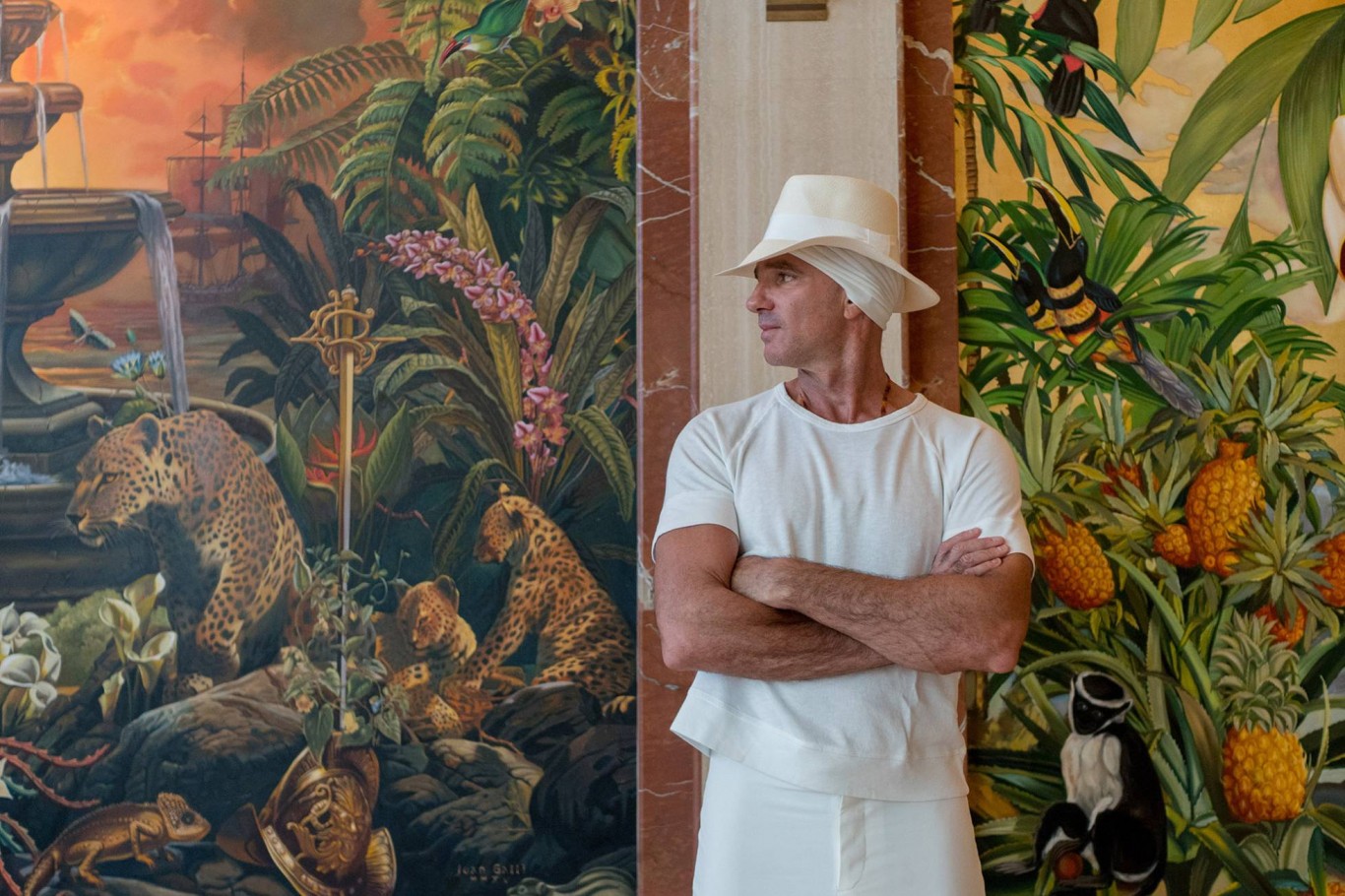 Por un mundo distinto transita Alan Faena. Vestido de manera informal, pero un alvíssimo blanco, el empresario argentino se sienta en una terraza en el patio de su hotel, decorado con obras de superestrellas como Jeff Koons y Damien Hirst, y tropicales - murales pintados inspirado como un fresco de su compatriota Juan Gatti . La decoración fue firmada por el cineasta Baz Luhrmann y su mujer.