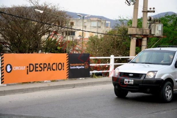 La primera tarea preventiva comenzó sobre el puente de avenida Entre Ríos frente a Plaza España. Allí se fijó un cartel con un mensaje que indica a los conductores reducir la velocidad.
