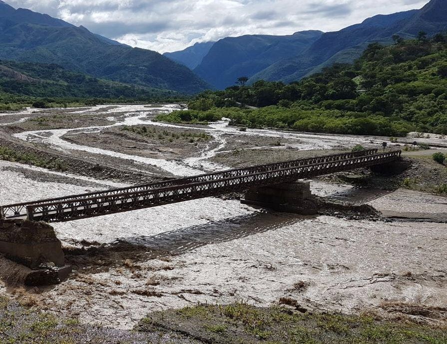 La Dirección de Vialidad de Salta informa que continúan con las tareas en Los Toldos con el objetivo de volver a habilitar el tránsito en el puente Bailey que une la localidad salteña con La Mamora (Bolivia).