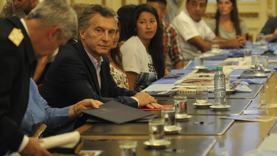 El presidente Mauricio Macri recibe en la Casa Rosada a los familiares de los 44 submarinistas del "ARA San Juan". Foto:Presidencia