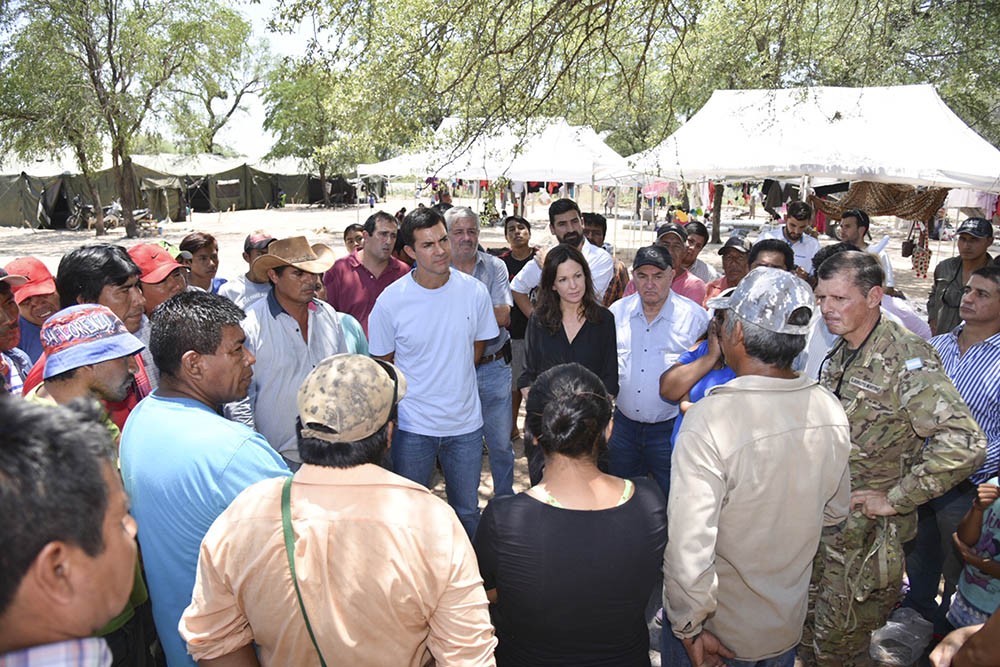 El gobernador Juan Manuel Urtubey estuvo hoy nuevamente recorriendo los centros de evacuados en Santa Victoria Este. Junto a la ministra de Desarrollo Social de la Nación, Carolina Stanley, visitaron las familias damnificadas de los parajes La Curvita y El Rosado.