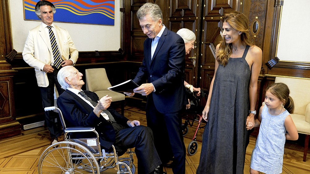 La celebración tuvo dos tramos ya que primero el jefe del Estado almorzó en el despacho presidencial del primer piso de la casa de gobierno con Julio César Torcello, un jubilado que también este 8 de febrero cumplió 100 años y a quien Macri había conocido en un acto de campaña.