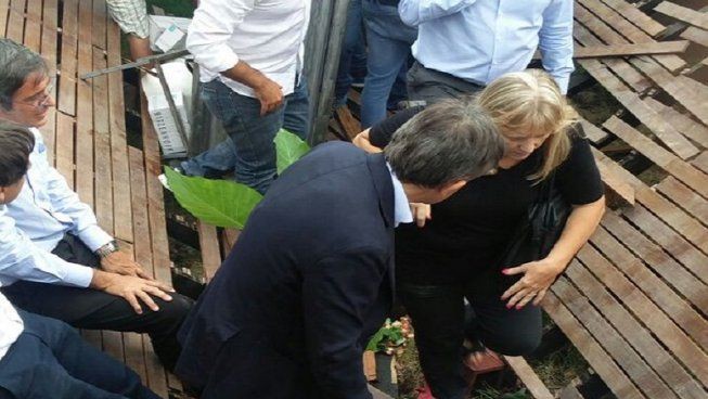 Tanto Frigerio como Moccia cayeron al suelo al derrumbarse la estructura de madera pero no sufrieron heridas, aunque Barrientos tuvo golpes en una rodilla y una cortadura en un pie.
