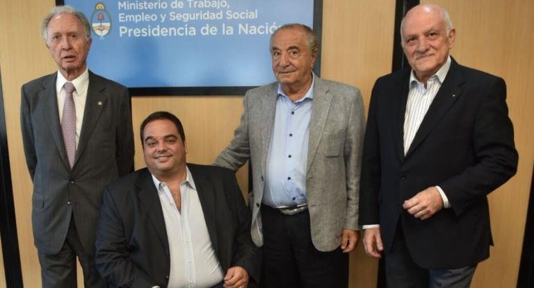 El titular de la Federación Argentina de Empleados de Comercio y Servicios, Armando Cavalieri, empresarios y el ministro de Trabajo de la Nación, Jorge Triaca, realizaron la firma de la paritaria sectorial que dispone un aumento del 15%.
