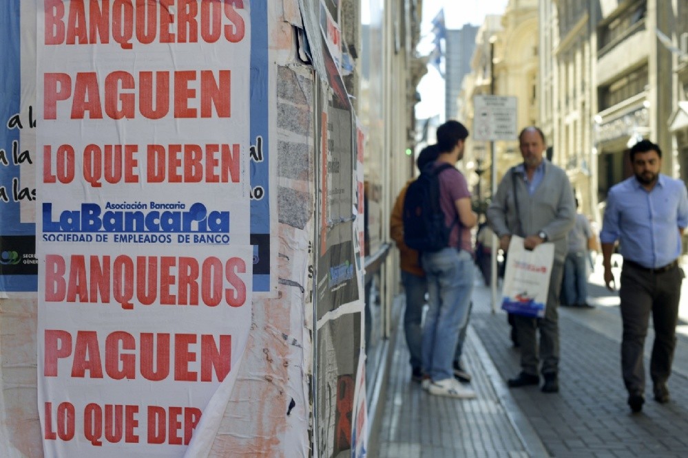 Según el gremialista, los bancos están pagando un 7% "a cuenta", lo que implica una suma "mucho menor" a la que corresponde por el fallo judicial: "Actúan así pues saben que algún banquero podría ir preso por no cumplir ese fallo", dijo Palazzo.