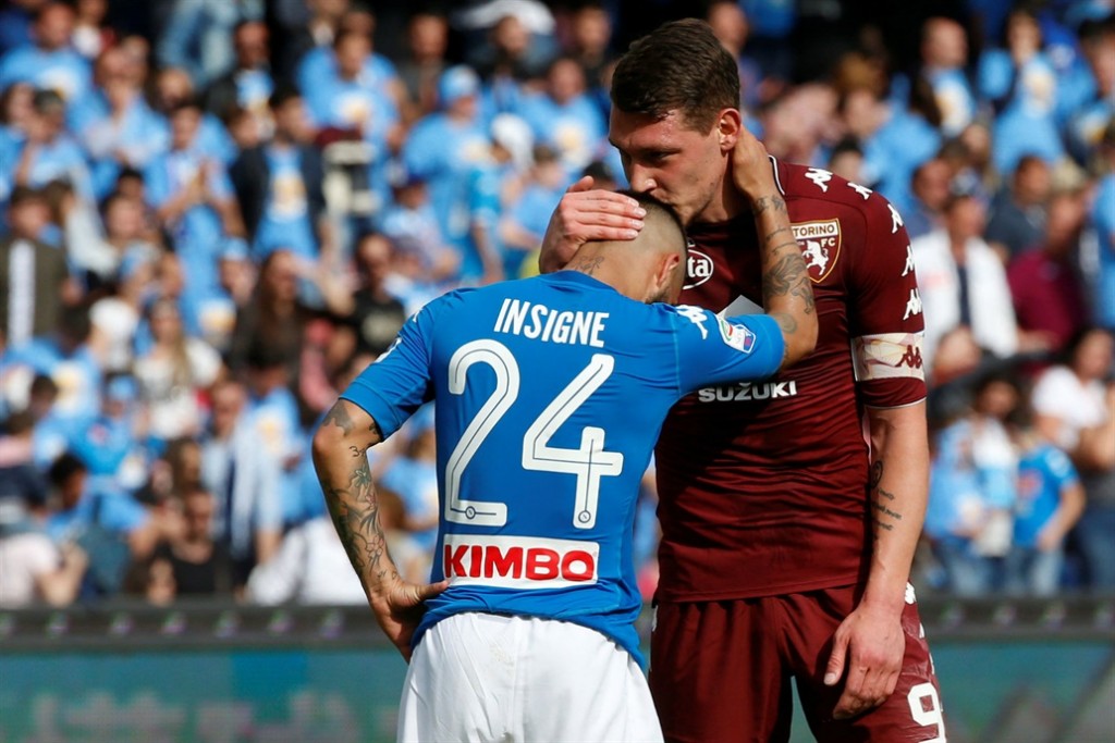 Nápoles llegó a adelantarse por dos ocasiones frente al Torino en el estadio de San Paolo, con tantos del belga Dries Mertens (minuto 25) y del eslovaco Marek Hamsik (71), pero los visitantes consiguieron reequilibrar el marcador en ambas ocasiones, con dianas de Daniele Baselli (55) y Lorenzo De Silvestri (83).