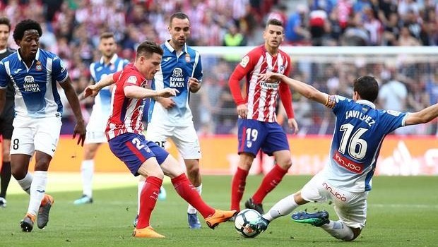 Lejos de adoptar una estrategia conservadora, el Atlético intentó salir al ataque, aunque el Espanyol siguió el estilo de su entrenador y empezó acechando la portería defendida por Oblak. Sin embargo, el cuadro colchonero superó esa presión y comenzó a apretar el acelerador en el terreno de juego.