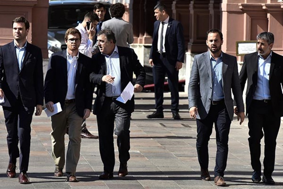 El Presidente estuvo cerca de una hora y media con los ministros Nicolás Dujovne, Luis Caputo, Francisco Cabrera y Juan José Aranguren, además del presidente del Banco Central, Federico Sturzenegger y los coordinadores Mario Quintana y Gustavo Lopetegui..