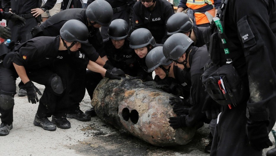 "Las dos bombas anteriores estaban en posición horizontal pero esta está en vertical. Los dos tercios de la bomba están enterrados, tenemos que sacarla en parte antes de poder empezar las operaciones", dijo Lai Ngo-yau, oficial de la unidad de artificieros. "La bomba no es estable y debemos ser prudentes", añadió.