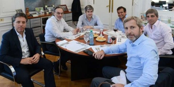 La primera reunión de coordinación del gabinete económico, ahora encabezado por Dujovne, será el martes. Participarán los ministros Jorge Triaca (Trabajo), Juan José Aranguren (Energía), Luis Miguel Etchevehere (Agroindustria), Luis Caputo (Finanzas), Rogelio Frigerio (Interior), Guillermo Dietrich (Transporte), Francisco Cabrera (Producción), Gustavo Santos (Turismo) y Andrés Ibarra (Modernización).