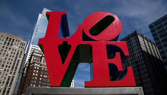 LOVE, como escultura, ocupa un espacio en la intersección de la calle 55 y la sexta avenida en Manhattan, Nueva York, y aparece también en otras ciudades norteamericanas.