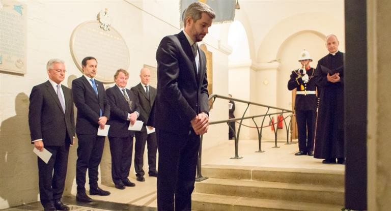 En el marco de su agenda oficial en Londres, el jefe de Gabinete, Marcos Peña, junto al ministro de Estado para Europa y las Américas de la cancillería británica, Alan Duncan, depositaron una ofrenda floral en el memorial de la Catedral de San Pablo de la capital del Reino Unido, en homenaje a los soldados británicos caídos durante la guerra de las Malvinas.