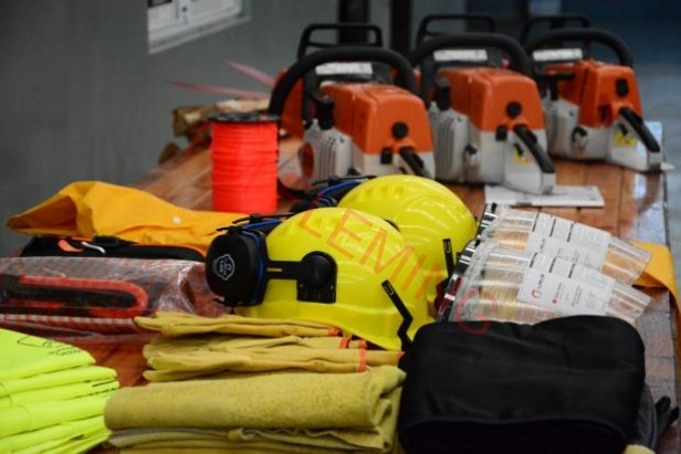 El material entregado consistió en trajes de lluvia, botas de goma, motosierras, motoguadañas, guantes de vaquetas, entre otras cosas, además de insumos para las herramientas.