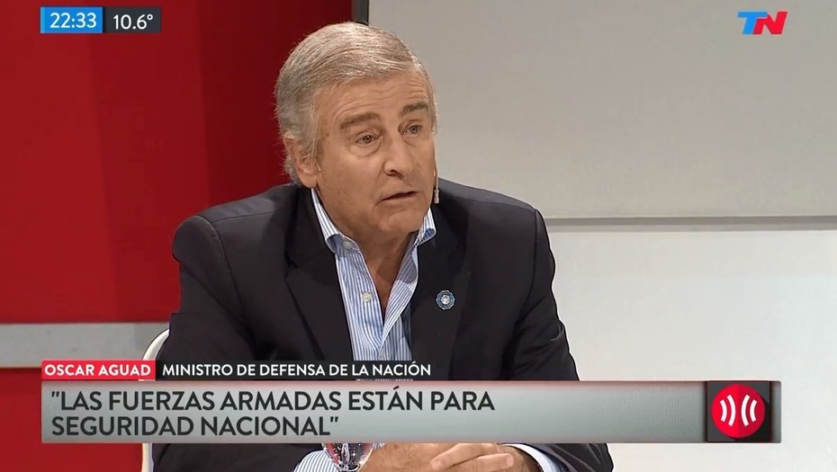 "Hay que sacarles a las Fuerzas Armadas la mochila de los años setenta. Hace más de 30 años que estamos viviendo en democracia y no hemos tenido ninguna posibilidad de que las Fuerzas Armadas actuaran fuera de lugar", dijo Aguad, en "A dos voces".