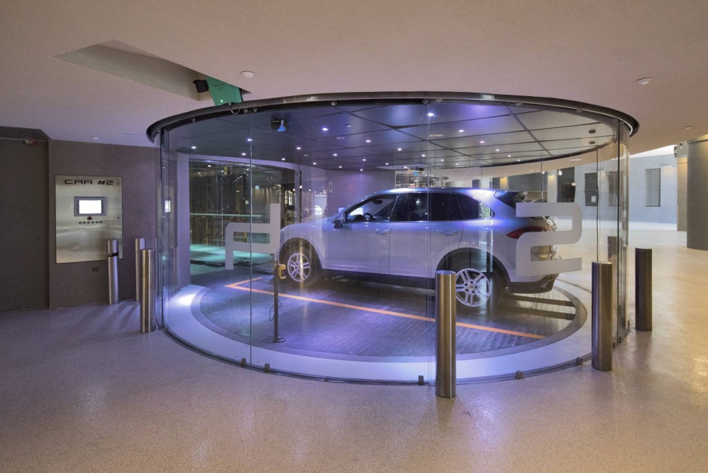 Dezer ejerce de maestro de ceremonias para enseñar cómo funciona una innovación que “marcará en el futuro la manera de aparcar coches en los edificios altos”, sostiene. El conductor no tiene que hacer nada. Apaga el motor y una plataforma robótica se encarga de colocar el coche en su sitio exacto. El proceso de acomodamiento lleva un par de minutos, pero en cuanto se pone en marcha la subida es veloz. Los oídos se taponan. Dezer, exultante, pregunta: “¿Es cool o no?”.