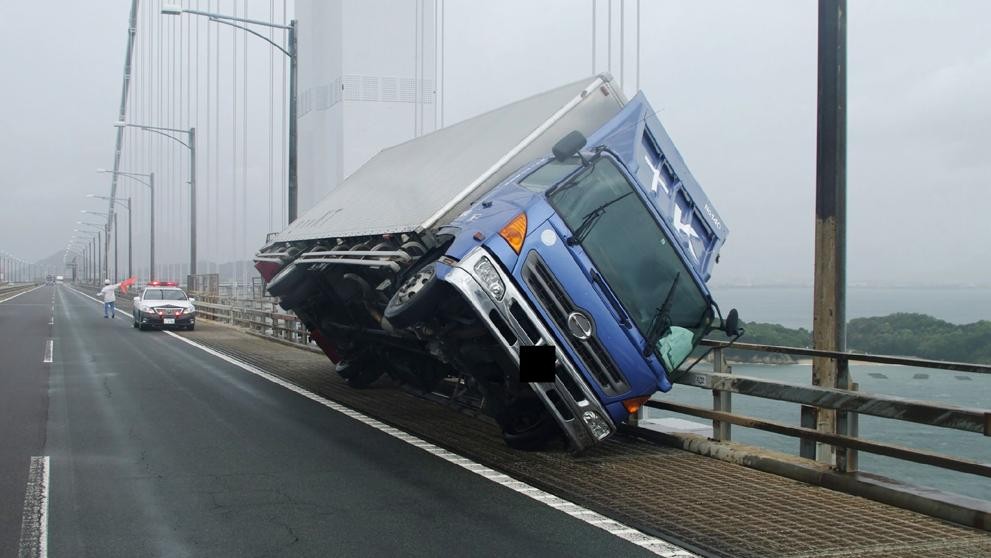 Los fuertes vientos tumban un camión en Japón .Foto:AFP