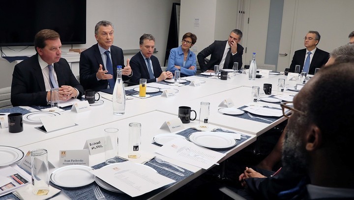 Más temprano, Macri recibió a un grupo de inversores en una reunión que se realizó en las oficinas del Financial Times, en la ciudad de Nueva York. Acompañaron al Jefe de Estado, el ministro de Hacienda, Nicolás Dujovne; el secretario de Asuntos Estratégicos, Fulvio Pompeo, y el embajador argentino en los Estados Unidos, Fernando Oris de Roa.