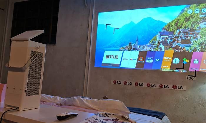 Lo cierto es que la nueva gama de proyectores de LG para este 2018 permite tener una gran pantalla incluso en espacios reducidos gracias a su opción de tiro corto con el que bastan 11 cm de distancia a la pared para tener una pantalla de 100 pulgadas. Aún así, el tamaño que ofrece el portfolio de la compañía surcoreana va desde las 30 hasta las 150 pulgadas con resoluciones HD, Full HD y 4K, con lo que incluso luz directa se puede ver el contenido a la perfección, algo de lo que adolecían los equipos de bombilla.