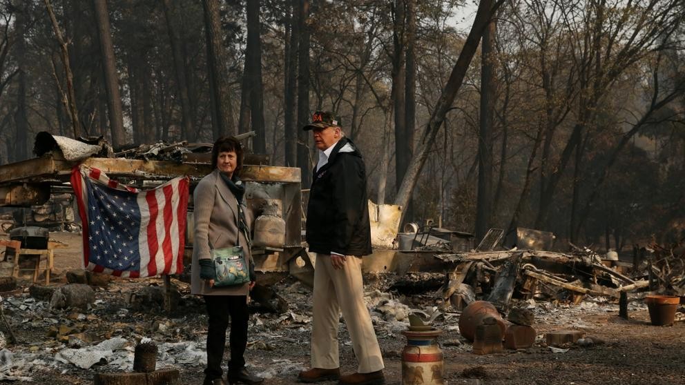 Trump recorrió parte del área quemada por el incendio conocido como “Camp Fire”, que arde en el norte de California, junto al gobernador del estado, el demócrata Jerry Brown, y su futuro sucesor, el también progresista Gavin Newsom; y la alcaldesa de Paradise, una población de 26.000 habitantes que fue completamente engullida por las llamas, Jody Jones.