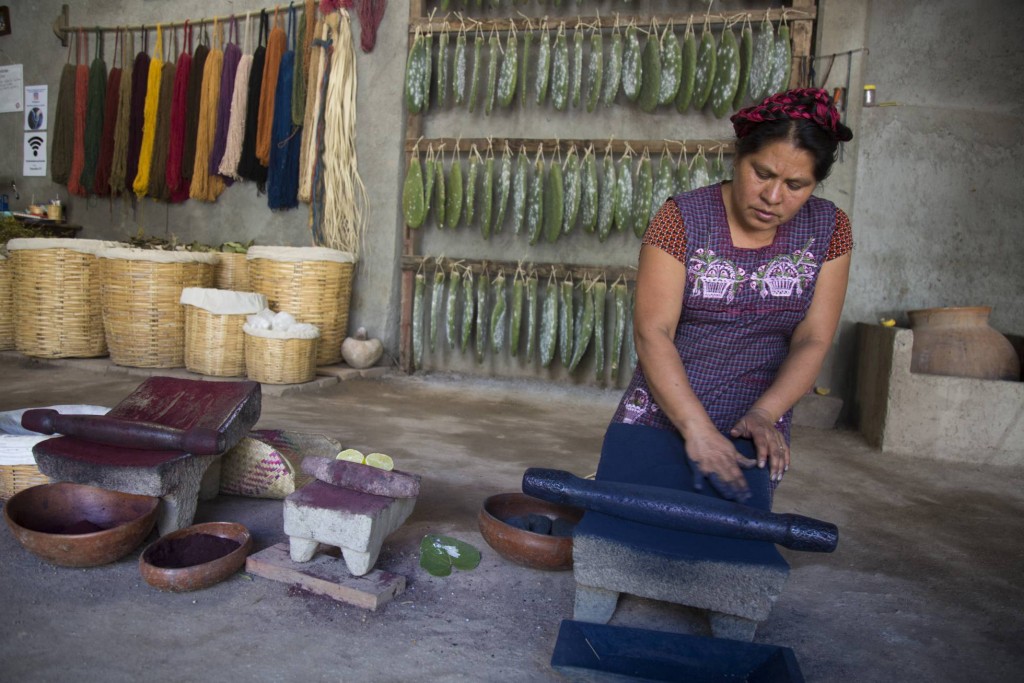 Juana Gutiérrez muele añil para sus textiles. TERESA DE MIGUEL EL PAÍS