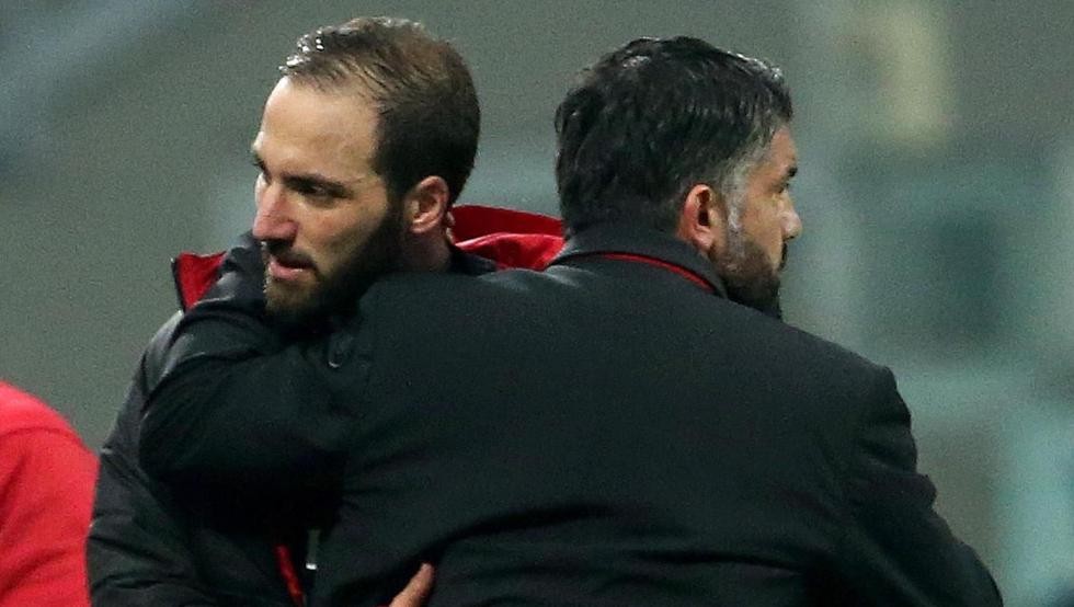 El abrazo entre HiguaÃn y Gattuso:Foto: Matteo Bazzi