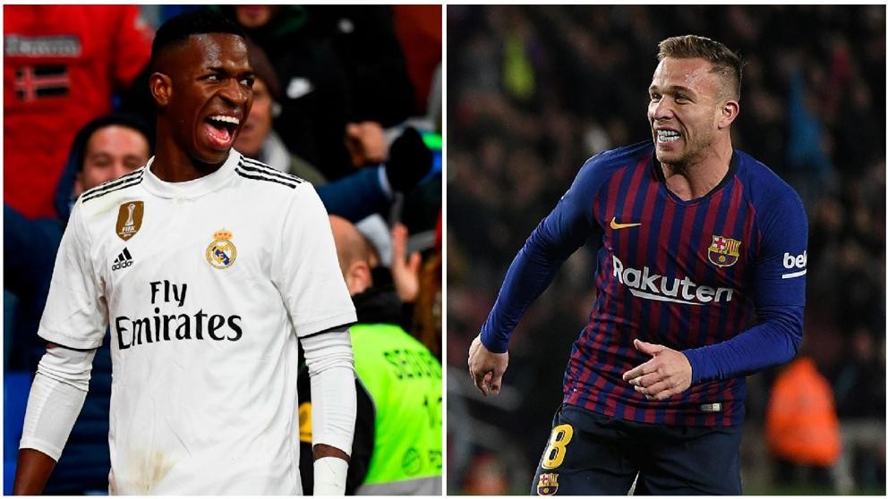 Si el Camp Nou busca en Arthur un sucesor de Xavi, en el Bernabeu Vinicius significa un sucedáneo del deseado Neymar. Rescatarlo del equipo filial, con el que llegó a jugar cinco partidos, ha sido una de las grandes apuestas de Santiago Solari respecto a la gestión de Julen Lopetegui. Así, el de São Gonçalo, de 18 años, ha intervenido en los últimos siete partidos de Liga y tiene opciones de titularidad en el Camp Nou para enfrentar su primer clásico. Más maduro (22), Arthur busca su segundo enfrentamiento de máxima rivalidad. Se estrenó en la cita precedente, con una actuación prodigiosa en el 5-1 del Camp Nou de la primera vuelta del campeonato. El de hoy puede ser el primer clásico entre los dos brasileños, futbolistas meticulosamente elegidos para ser trascendentes en el Barça y el Madrid del futuro próximo desde demarcaciones, talantes y cualidades muy diferentes.