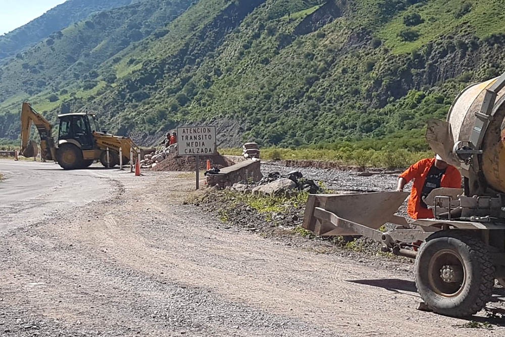 A la altura del km 23, cerca de Agua Negra, se llevan adelante tareas de reparación en parte de la calzada que había sido erosionada por el río.