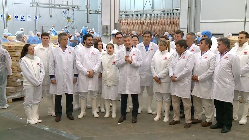 Macri, durante el anuncio en el frigorÃfico de Marcos Paz. Foto: Captura Youtube