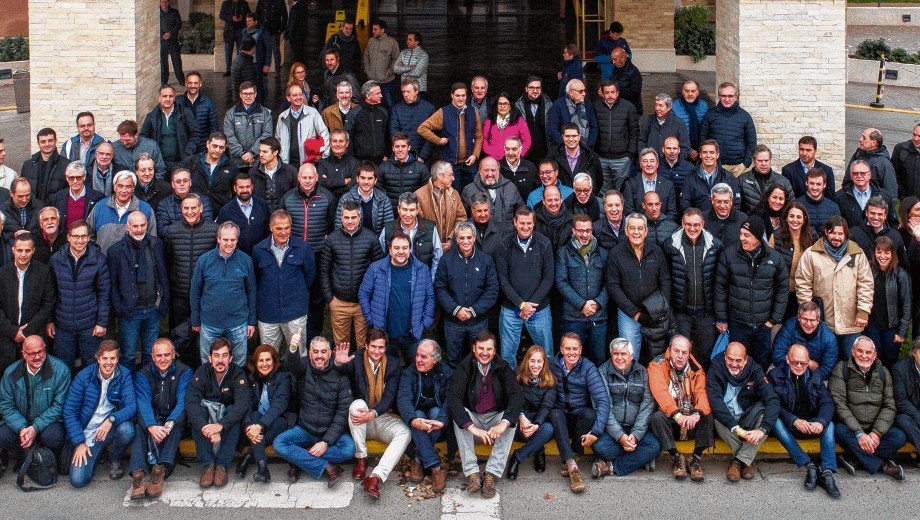 Más de cien referentes de varios sectores recorrieron los yacimientos no convencionales de Vaca Muerta y accedieron a posar juntos en las puertas del casino. Foto: Gentileza Pensar Ideas