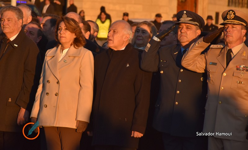El acto protocolar del Día de la Bandera comenzó puntualmente a las 8.15 con el izamiento de la bandera en el mástil mayor del Monumento. Un grupo veteranos de Malvinas trasladó la enseña patria hasta el pie del mástil.