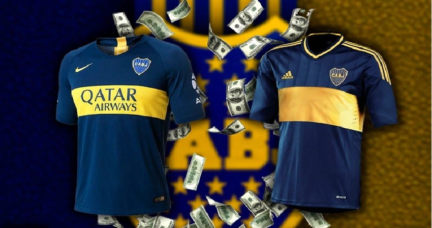 En 2012 se firmó un contrato con Nike por ocho años a cambio de 60 millones de dólares neto (dividido por temporadas). Adidas, que pretende pisar más fuerte que la competencia en Argentina, elevó una propuesta superlativa que fue vista con buenos ojos por Boca, que decidió acompañarla en votación por mayoría y que solo contó con el rechazo de la oposición. De esta manera, "las tres tiras" tendrán el monopolio en territorio nacional, ya que además apadrina a la selección argentina y River.