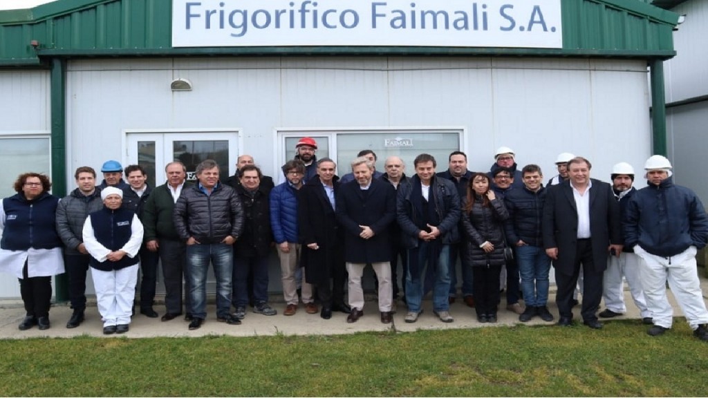 Miguel Ángel Pichetto y Rogelio Frigerio, recorrieron el frigorifico " FAIMALI" que exporta cordero patagónico a Japón.