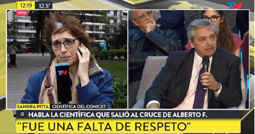 El miércoles, en un acto realizado en la Facultad de Ciencias Exactas y Naturales de la Universidad de Buenos Aires, Fernández recibió el apoyo de 8.500 científicos y, en un tramo de su alocución, se refirió a Pitta con nombre y apellido.