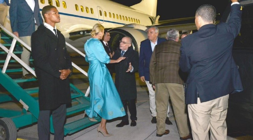 Ivanka Trump fue recibida por el canciller, Jorge Faurie y el gobernador de Jujuy, Gerardo Morales, en el aeropuerto de Jujuy.Crédito: CancillerÃa