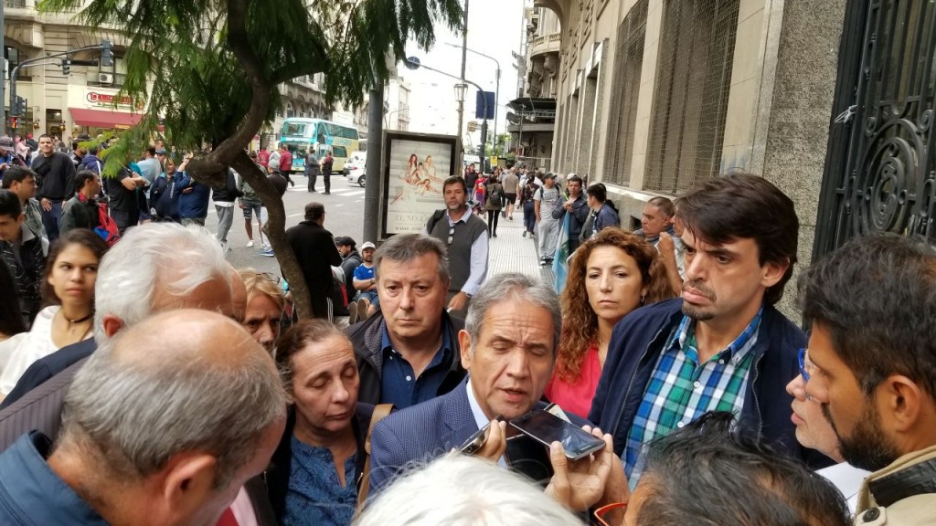 El sindicalista bancario Sergio Palazzo, entrevistado por periodista. Ademà s del aumento le dan un bono el DÃa del Bancario de casi $50.000.