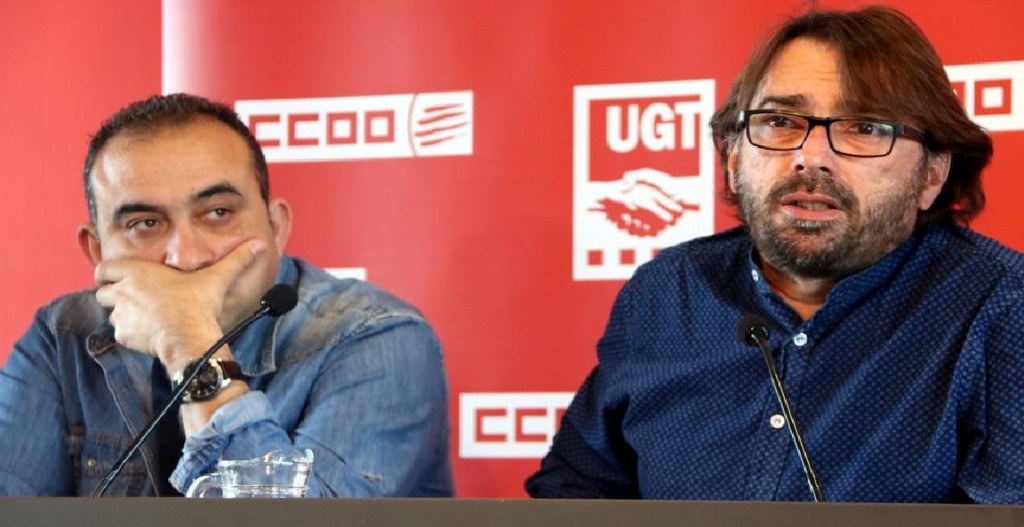 Los secretarios generales de CC.OO., Javier Pacheco, y de UGT., Camil Ros.Foto:Josep Molina