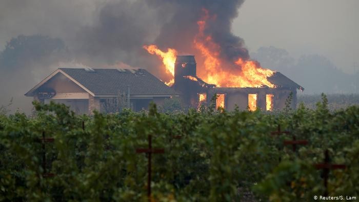 Mientras, en el condado de Sonoma, casi 2.000 personas fueron desalojadas por un enorme incendio en el área vinícola del norte de California donde las llamas han quemado más de 4.000 hectáreas, avivadas por ráfagas de vientos de 70 a 112 kilómetros por hora.