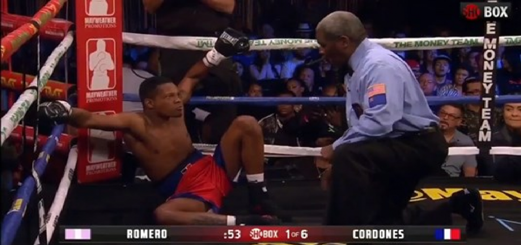 Rolando Romero confirmó su condición de noqueador anoche con una espectacular victoria antes del límite en el primer round. El dominicano Juan Carlos Cordones probó el poder de los puños de uno de los grandes proyectos que tiene en su agencia Floyd Mayweather.