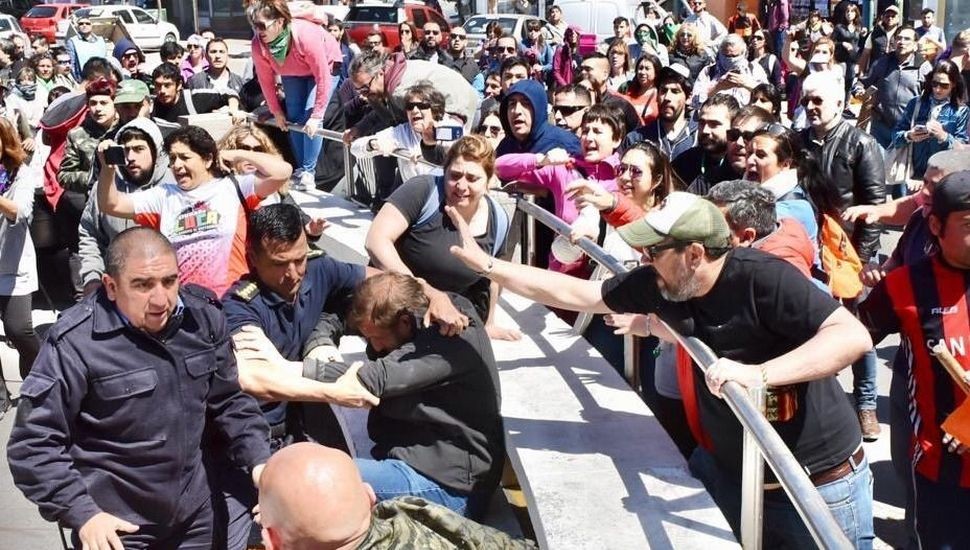 Cientos de manifestantes se movilizaron a la Casa de Gobierno en la capital provincial, pero efectivos de la Policía local actuaron luego de que algunos de los que participaban de la protesta tiraron las vallas.