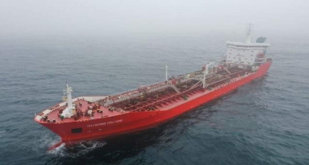 Buque proveedor de gasoil chino en zona del mar argentino.