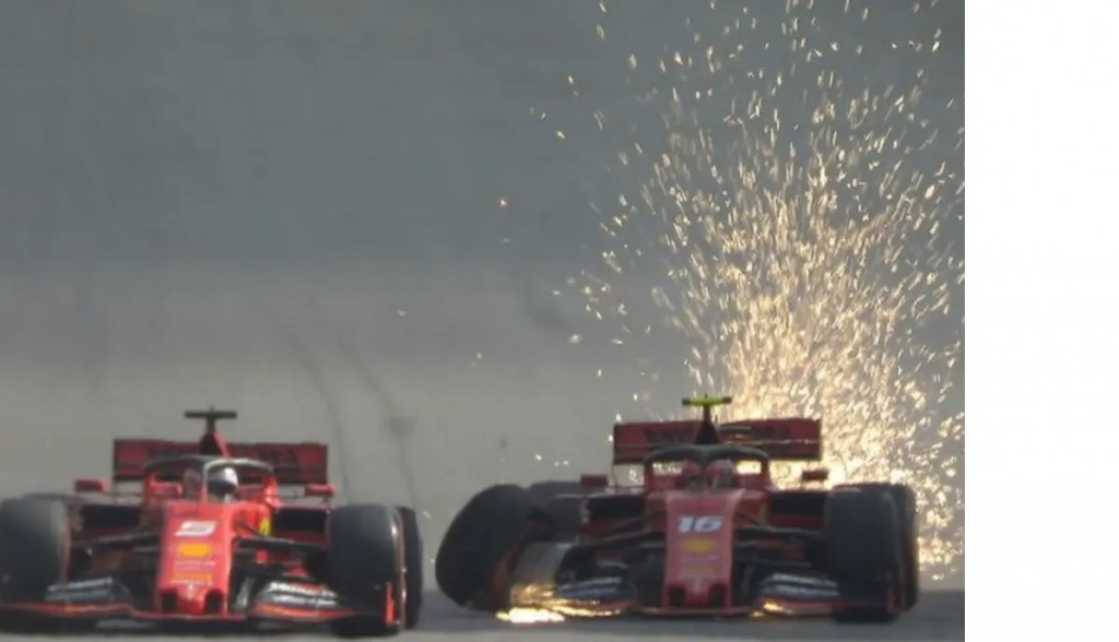 Sebastian Vettel y Charles Leclerc se tocan y abandonan en la vuelta 65.