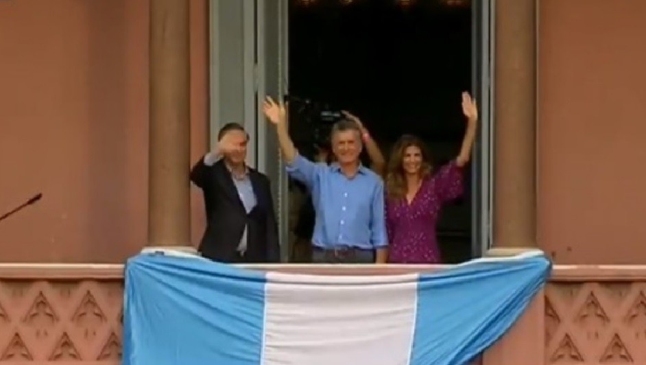 Cientos de personas con banderas argentinas llegaban esta tarde a la Plaza de Mayo y se concentraban frente a la Casa de Gobierno, donde el presidente Mauricio Macri tiene previsto hablar para despedirse de su mandato de cuatro años, que finaliza el 10 de diciembre.
