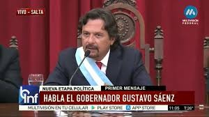 Cerca de las 11 Gustavo Sáenz, ya como gobernador, se dirigió a todos los salteños en su primer discurso como mandatario provincial. “Hoy iniciamos un nuevo camino para Salta. Trabajaré sin descanso para que logremos una Salta mejor. Uno no es lo que dice, uno es lo que hace. Han podido ver la cantidad de obras que nunca se hicieron en la ciudad . Me llena de orgullo que el 62 por ciento de los salteños haya aprobado”. dijo Sáenz y agrego, ello me lleva a tener una responsabilidad aún mayor, responder a esa confianza, a esa esperanza, a esos sueños de quienes creyeron en mí”, dijo y aseguró que a los espacios ocupados “llegó solo”.