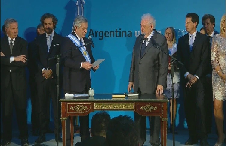 Los ministros que juraron en sus cargos fueron Santiago Cafiero (Jefatura de Gabinete), Martín Guzmán (Economía), Matías Kulfas (Producción), Felipe Solá (Relaciones Exteriores), Eduardo "Wado" de Pedro (Interior), Daniel Arroyo (Desarrollo Social) y Ginés González García (Salud).