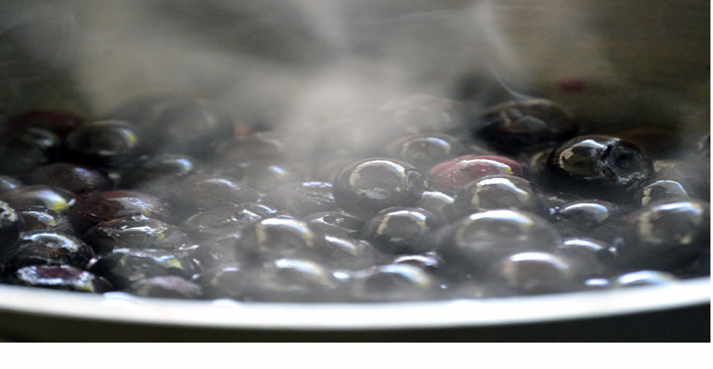 1. Colocar en una cacerola chica los arándanos (pueden ser congelados) con el agua. Llevar a hervir por 2 minutos. Luego procesarlos y dejar enfriar.