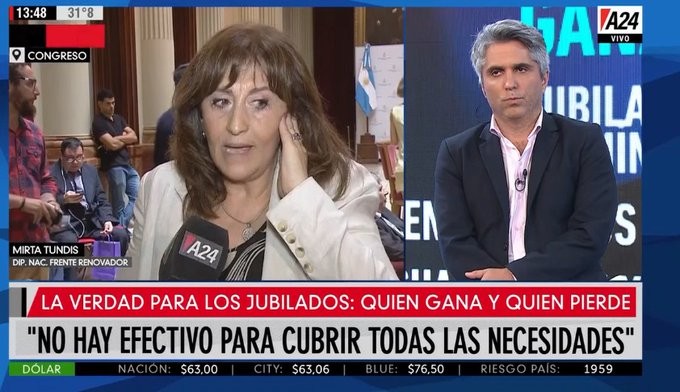Cuando se lanzo a la politica, Mirta Tundis, utilizo la bandera de los jubilados como estandarte para apuntalar su llegada a la Cámara de Diputados de la mano de Sergio Massa y el Frente Renovador y desde ese momento hizo poco y nada por mantener esa defensa que tanto pregonaba en televisión.