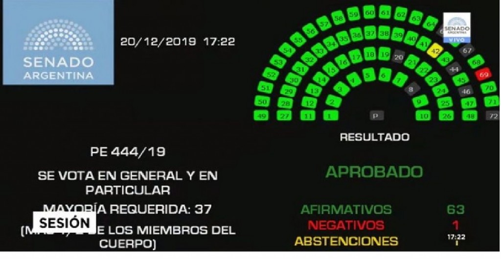La Cámara de Senadores dio media sanción este viernes con 63 votos a favor, uno en contra –el senador Alfredo de Angeli- y una abstención –la senadora Silvia Elias de Pérez- el nuevo pacto fiscal acordado por el presidente Alberto Fernández y 23 gobernadores en la primera sesión extraordinaria en la que también se tratará el megaproyecto de Emergencia Económica. De esta manera, el proyecto será girado a Diputados.