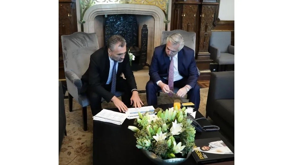 El titular del organismo previsional, Alejandro Vanoli y Alberto Fernandez. Foto: Presidencia